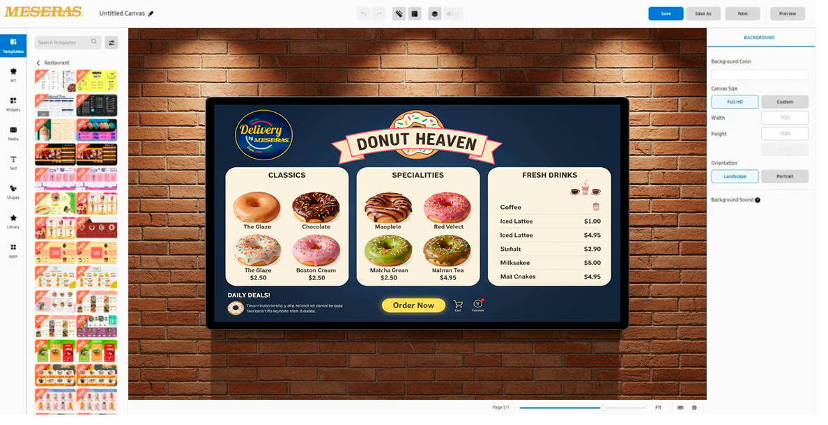 Digital menu boards are quickly becoming standard in the restaurant industry, and the Meseras apps solution makes the process of incorporating restaurant digital signage simple and efficient. The process of creating content is quick and intuitive and promotions can be easily managed from a central dashboard, ensuring your menu reflects the current trends.